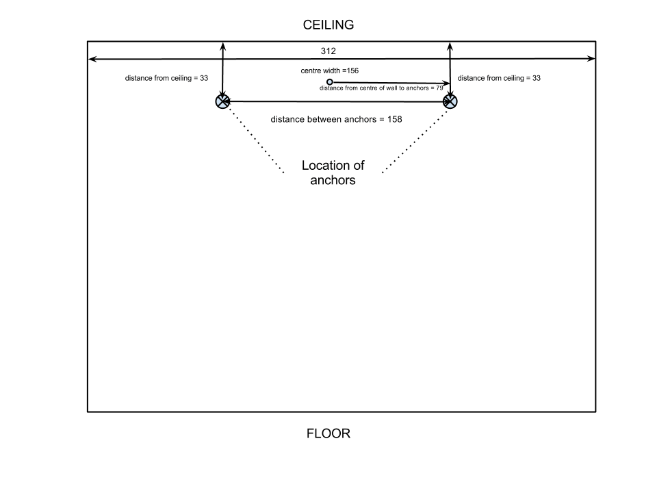 When I came back I started to use my mathematics skills to measure and work out the best location for the anchors. So I came up with this diagram: