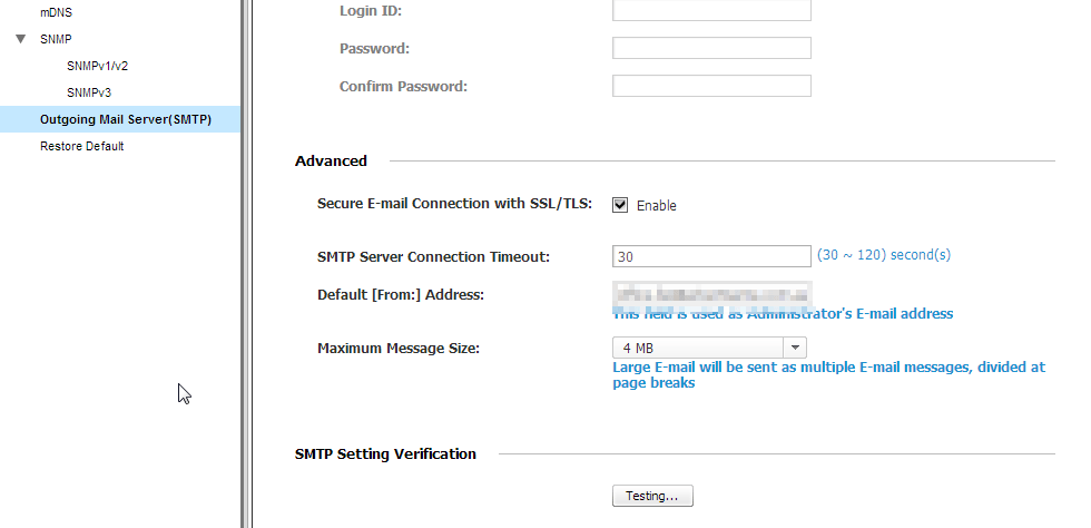 For some unknown reason, our business printer – the Samsung CLX-6220 lost it’s SMTP printer settings. This meant we were unable to scan a document and send this to an email address in the address book. The benefit of doing this is you can have a copy in your mailbox and also quickly forward scanned document to someone else.
