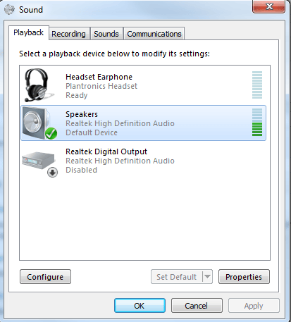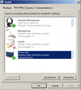 NOTE: In order to use the Stereo Mix, you need to make sure your internal speakers are set to the default communication device like below: