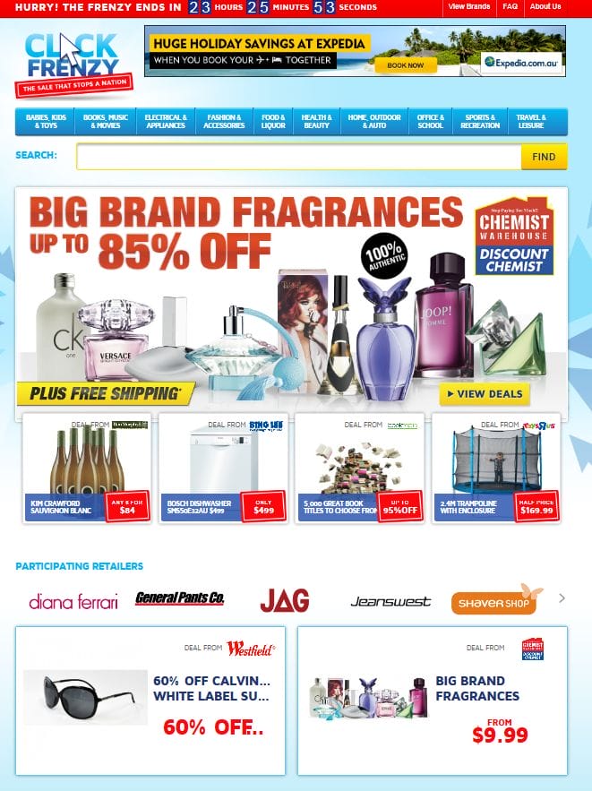I just tried accessing the click frenzy website www.clickfrenzy.com.au after my wife complained that Interet was down, but in actual fact it’s the site that is down. After some researching, just the site and other websites that are pointing back to their website is also down e.g kogan www.kogan.com/ClickFrenzy are also down.