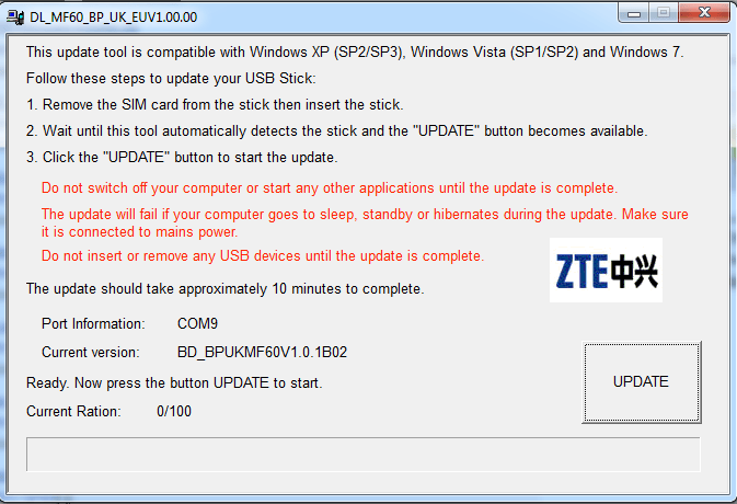 MF60 Installer Patch - Install the Windows MF60 driver. The filename is ZTE MF60 Windows.zip