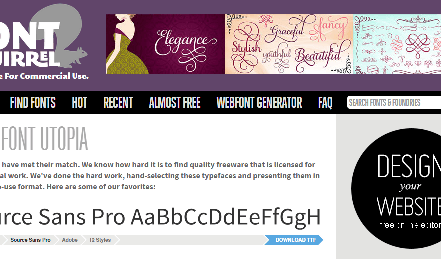 Looking for Free fonts? You’ve come to the right place, especially if you’re looking for 100% Free For Commercial Use fonts. I stumbled across this site when a designer told me to use a particular font. The website is called Font Squirrel and there’s a good collection of fonts.