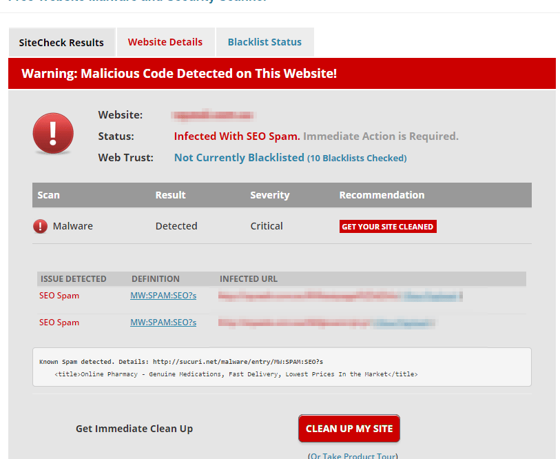 I decided to confirm this and used a website called Sucuri to scan the website and below was the results: