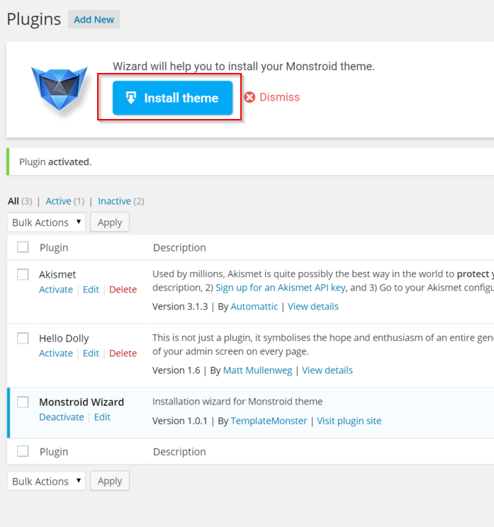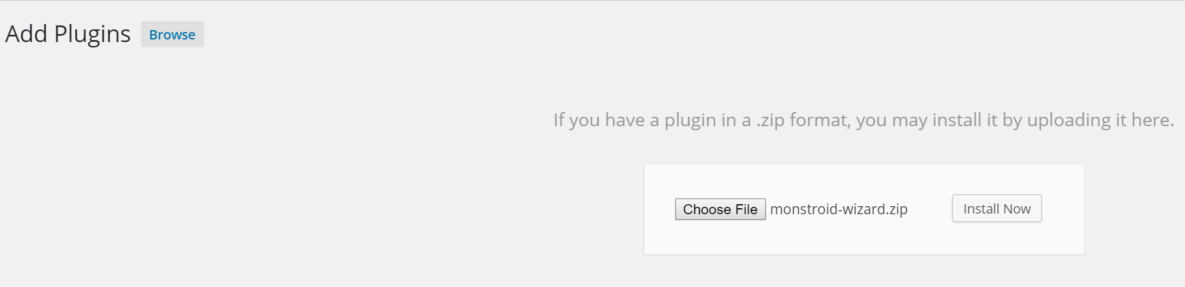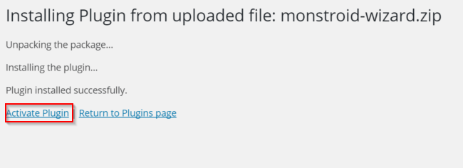 Once you download the plugin called monstroid-wizard.zip upload it to your plugins.