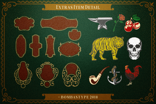- Loads of extras – alternate characters and ligatures, discretionary ligatures, ornate frames, floral elements and colorful illustrations.