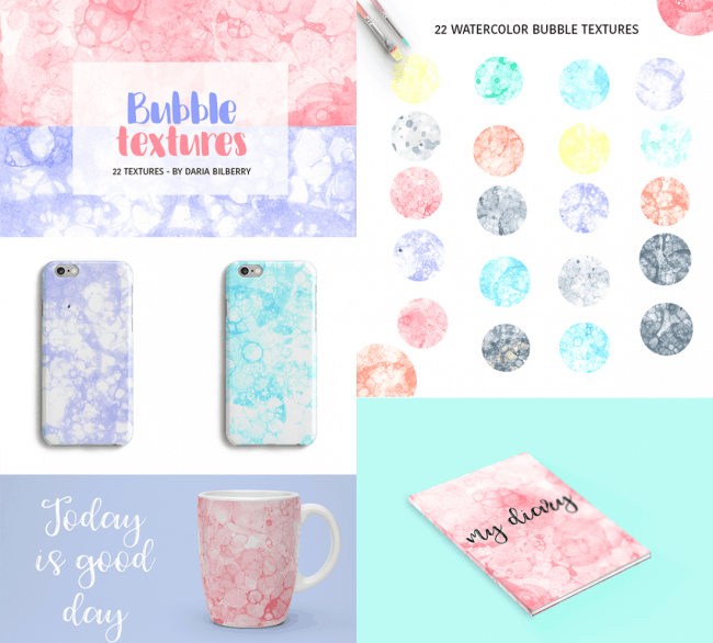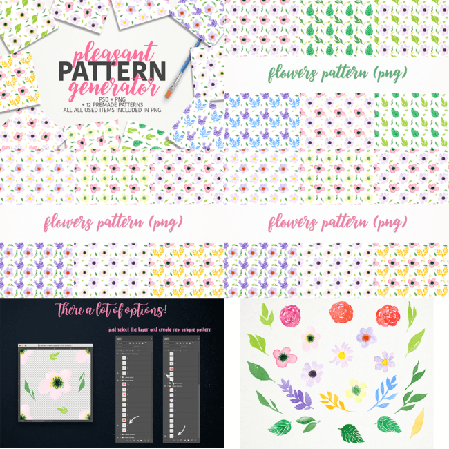 - Loads of professional resources – patterns, textures, backgrounds, badges, typefaces, borders and countless more.
