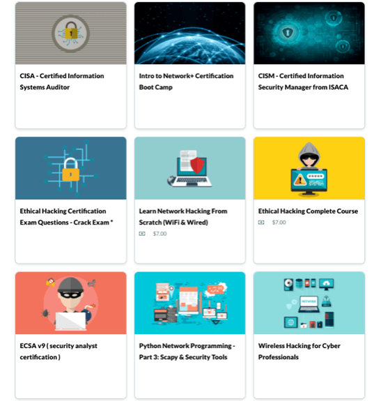 - Become a cyber crime fighter through dozens of courses – ethical hacking, security certification, python network programming, Certified Information Systems Auditor and more.