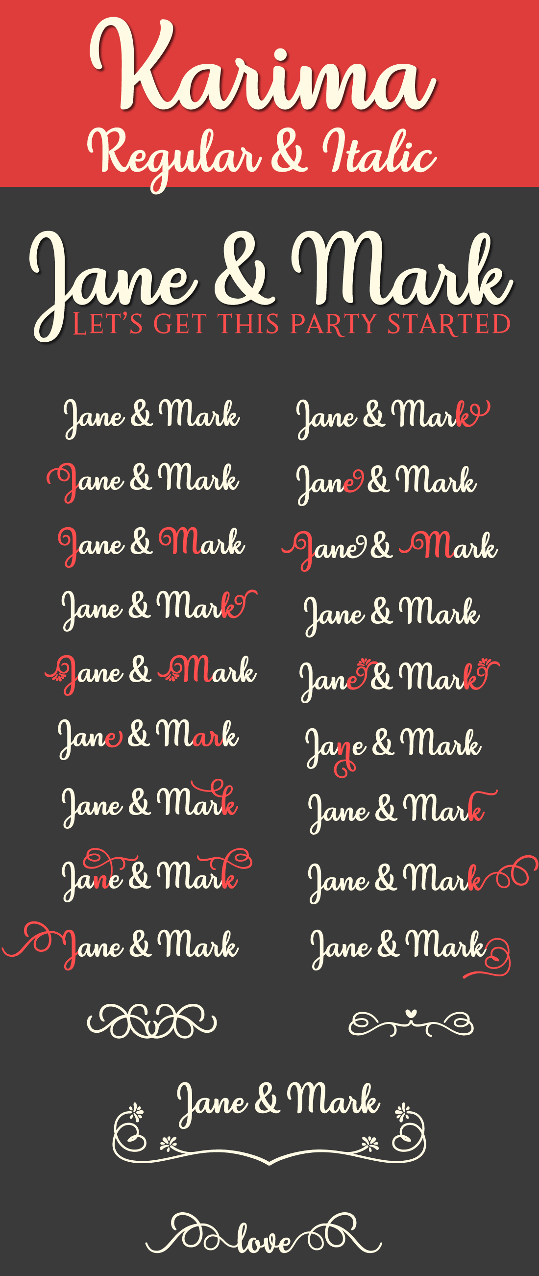 - Two styles – regular and italics versions.