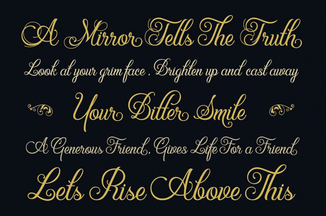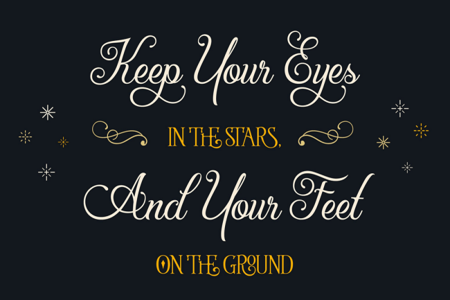 - Tons of OpenType Features – stylistic alternates, unique ligatures, elegant swatches, contextual alternates, Old Style Numerics and more.