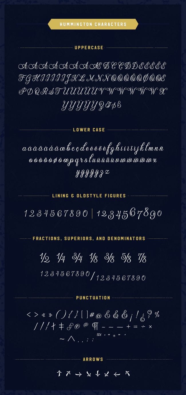 - 4 classy typefaces: Wallington Pro, Hummington, Marschel Pro and Serendior.