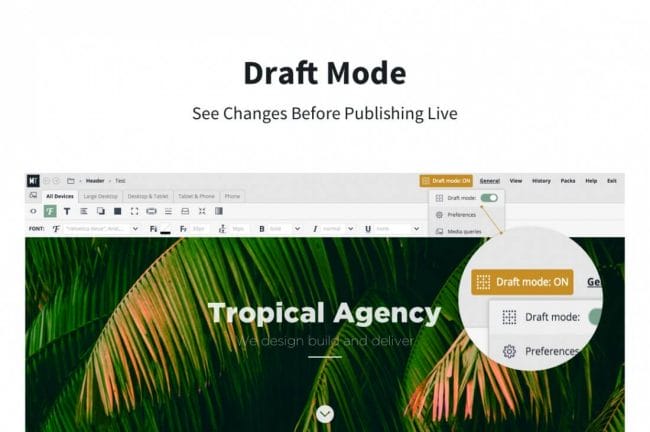 - With “draft mode,” you can privately preview your design changes before publishing them to the world.