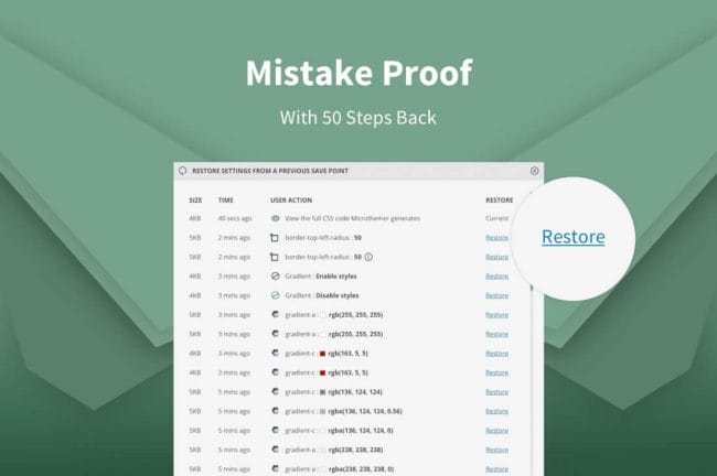 - Microthemer is mistake proof, as it maintains a revision history, letting you easily roll your changes back to any of the previous 50 revisions you made.