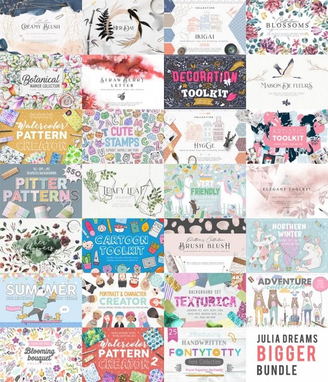 NOW ON: Mighty Deals Exclusive! Julia Dreams Bigger Bundle of 7400+ Elements – only $9!