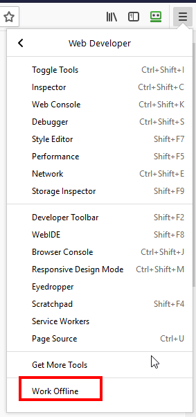 The other option would be to manually select OFFLINE in the Web developer but I prefer to launch this batch file when the computer starts to load a particular website.