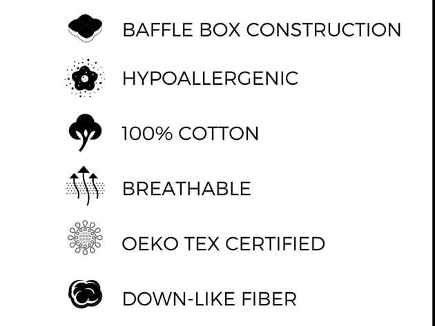 • Materials: 100% cotton 280TC (shell), down alternative fine poly gel fiber (Percale fill)
