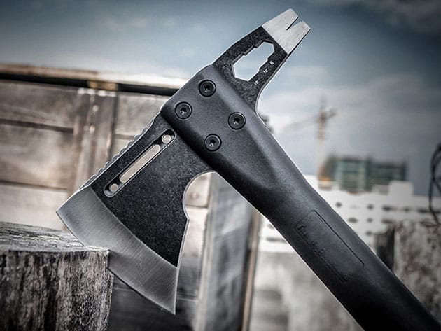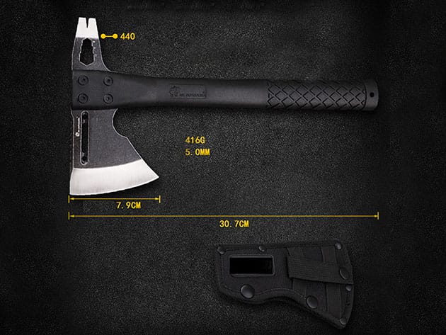 G7 Axe is a beautifully designed steel axe that has a plethora of other tools on the axe, thus placing it into the multi-tool/survival category. Use it as a 12″ axe, nail puller, or a hexagon screwdriver. This multi-function tool combines the essential functions of these tools into one streamlined package. Not only functional, this axe also comes with a G10 power grip giving you full power to maneuver.