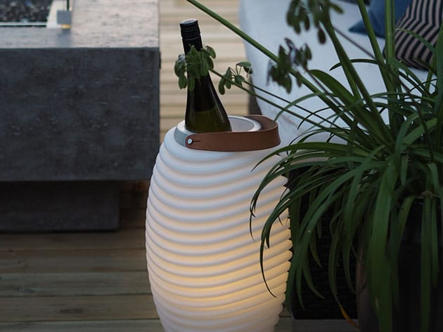 Synergy Pro 35 is the smallest sized member of the family and will hold 1 bottle of wine in the built-in compartment. It also features a high-quality 10W speaker unit, which through the built-in antenna can be coupled to other Kooduu products, within a 180ft range, for a well-orchestrated audio system throughout your home, pool, and yard. Add to this the warm, ambient LED light and you will have a perfect setup for evenings on the patio.