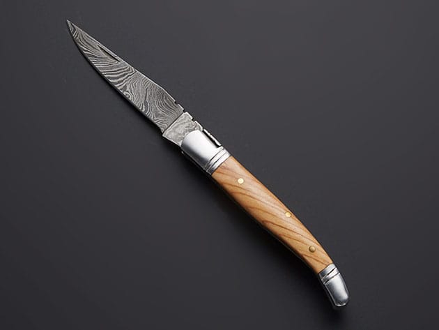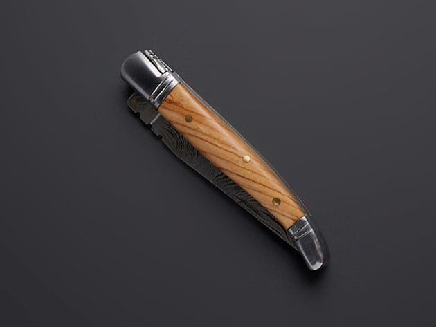 Kitchen knives must be first and foremost a formidable tool, possessing very specific attributes that endow them with the ability to process food properly. That’s why Jay Knives brings you this Laguiole Steak Knife. This folding knife is hand-forged, heat-treated, ground, polished, and at times etched and engraved – all by traditional means – 100% hand made. With a Damascus finish and a hardness of 55 to 58 HRC, this 3″ knife makes a great tool for effortlessly slicing your favorite steak.