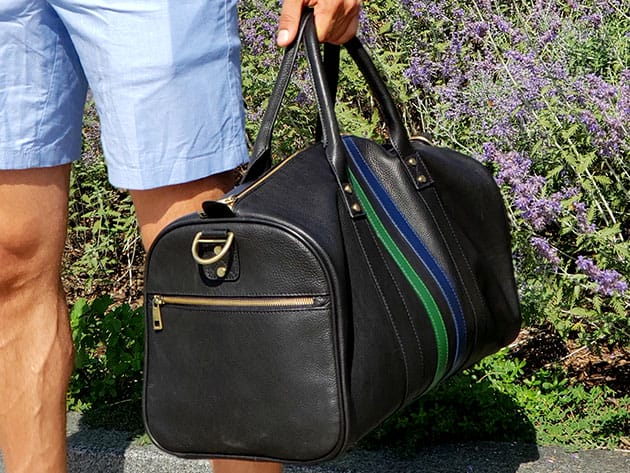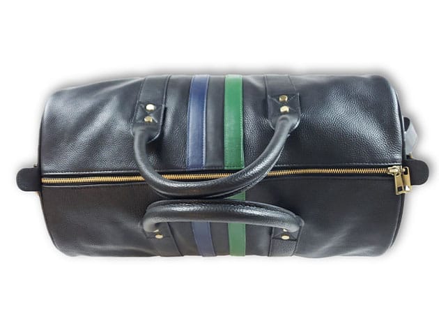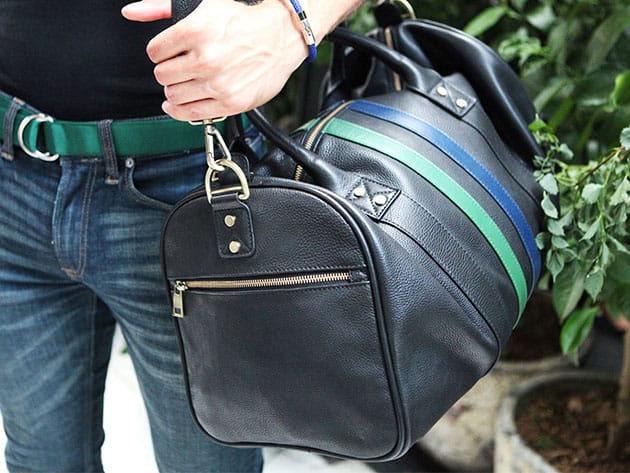 The FH Wadsworth Black Leather Duffle Bag is both stylish and functional. Made from full grain leather, this modern weekender bag brings luxury, durability, and timelessness to any destination. The duffle bag’s center stripes add a classic, yet sporty sophistication to round out your adventure-ready style.
