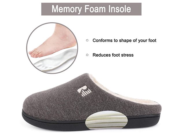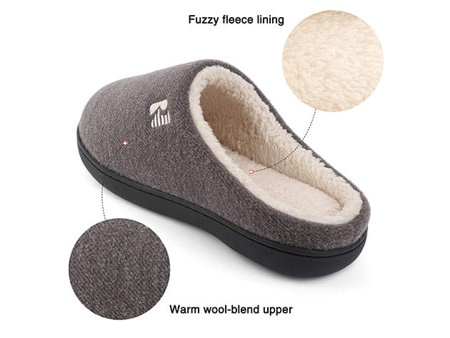 Men’s Original Two-Tone Memory Foam Slippers (Gray/Natural, Size 9-10) for $14