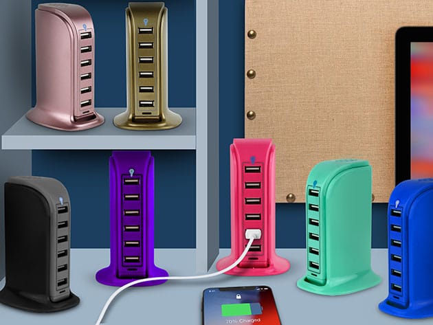 Power Tower 6-Port USB Charging Hub for $16