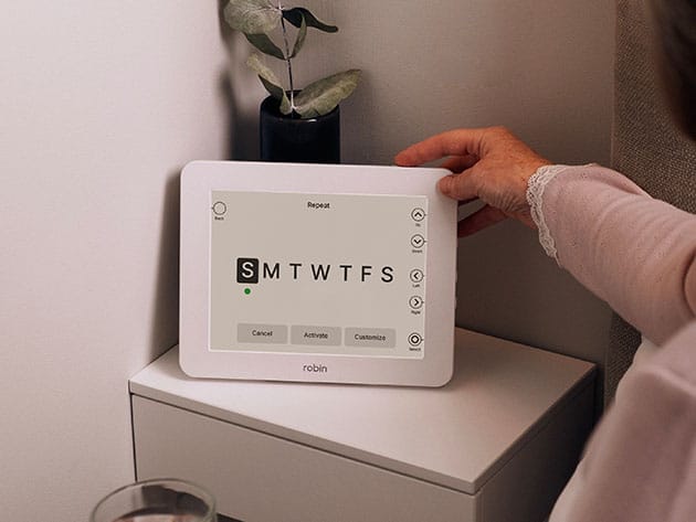 With a beautiful, clear, 8-inch color display, 170° viewing angle, and thoughtfully designed user interface, this Robin alarm clock is ahead of the game. The digital alarm clock also features custom programmable alarms and reminders for on-screen display, as well as a talking clock feature that will announce the current date and time. Also featured on the side of the clock is an auto-dimming button that will reduce the brightness of the display for 4 hours at a time. Robin 2.0 is designed to fit into any home or environment and can also be wall-mounted for easy viewing.