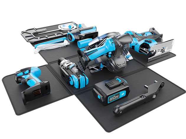 Meet the all-new POWER8 Create+! It’s a multi-function power tool kit that features an award-winning design that is centered around an innovative case and the unique UniGrip system. The UniGrip connects the battery pack and motorized tool heads to form individual handheld tools. This tool kit comes with 3 handheld power tools: Hammer Drill, Circular Saw, and Orbital Jigsaw, which transforms into a Drill Press, Table Saw, and Scroll Saw respectively with the bench-top function. The Worklight also transforms into a lantern for more smooth and consistent light. With 8 different functions, this space-saving all-in-one power tool kit is the perfect addition to your home workshop and makes a great gift!