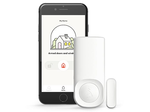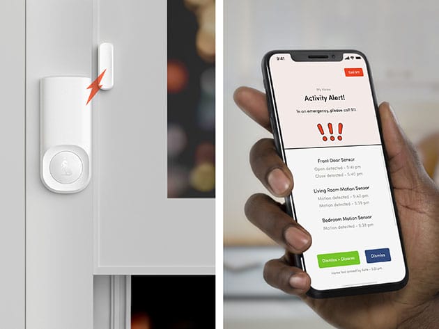 All you need for a safer home is Kangaroo’s Motion + Entry Sensor, free app, Wi-Fi and a smartphone. A simple but effective home security system, this wireless Motion + Entry Sensor keeps tabs on doors, windows, and hallways. Get an instant phone notification when your protected door or window is opened and someone passes through the threshold. This sensor comes with a 1-year subscription of the Kangaroo Complete Plan which contains the free app features plus SMS & voice call notifications, 24/7 pro-monitoring, voice assistant integration, and more.