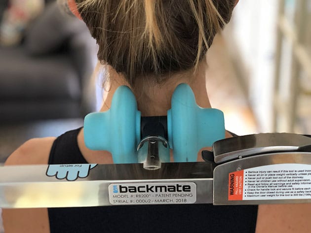 The Backmate is a revolutionary massage system. It sets up in your doorway in seconds and allows you to target and apply just the right amount of massage pressure to any part of your body — without having to use the muscles you are massaging or having to get on the ground. The Backmate rollers are adjustable and interchangeable. It comes with a set of standard ball rollers and a set of blade-shaped rollers. Use it to alleviate pain in your neck, back, shoulders, legs or anywhere you need relief.