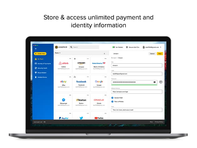 - Store & access unlimited payment and identity information