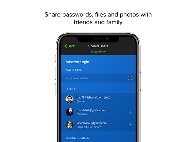 - Share passwords, files & photos w/ friends and family