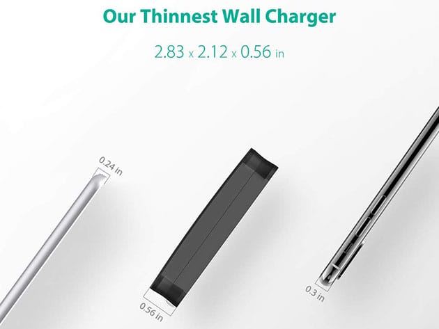 - Ultra-thin design at 0.59″, half the size of regular wall chargers