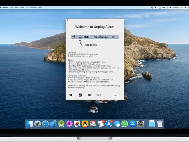 In a world where freelancing and remote work is emerging, working from cafes, libraries, co-working spaces, and other public places became the trend. With this trend, it is a major worry that your MacBook would be stolen if you leave it even for a few minutes to maybe take a small walk or grab a coffee. That’s where “Unplug Alarm” comes in, It’s a small app for MacBook that detects a theft attempt and alerts you. Whenever you leave, simply activate the app and you’ll get notified directly on your phone with push notifications and captured photos. It will also fire an alarm siren sound if someone unplugs it or closes the screen. Now, get that coffee without any worries!
