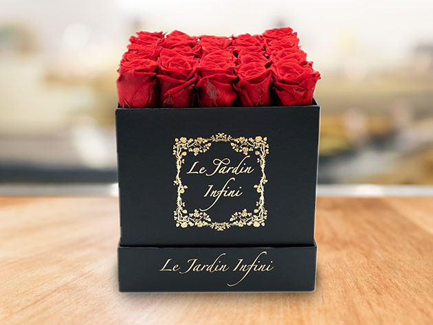 Throughout the world, the rose has come to mean everything from innocence to intrigue, purity to passion, friendship to fascination, and new love to eternal longing. Now, the rose can be preserved for at least a full year—and Le Jardin Infini brings it to you in an exquisite presentation. Preserved roses are real roses that last up to a year. They were picked at their perfect bloom and dipped into a non-toxic formula to preserve their natural beauty all year long. For anyone who appreciates the beauty of the rose and values a unique, deeply emotional gift like this, Le Jardin Infini roses are simply unparalleled.
