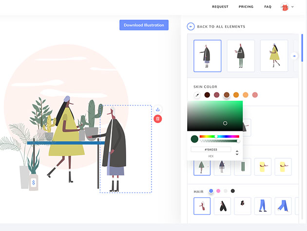 ITG is an illustration builder where everyone can create tons of illustrations for any purpose. ITG builder allows you to quickly build and customize over 1,000 predefined illustrations according to your needs. There you can find a list of compositions. On each illustration, you can change or delete elements, change color and download the whole composition or specific element in JPEG, PNG or SVG format. With ITG.digital, you can start creating cool illustrations with no design knowledge required. Use it for your website, app, presentations, marketing materials, blog posts, or just for fun!