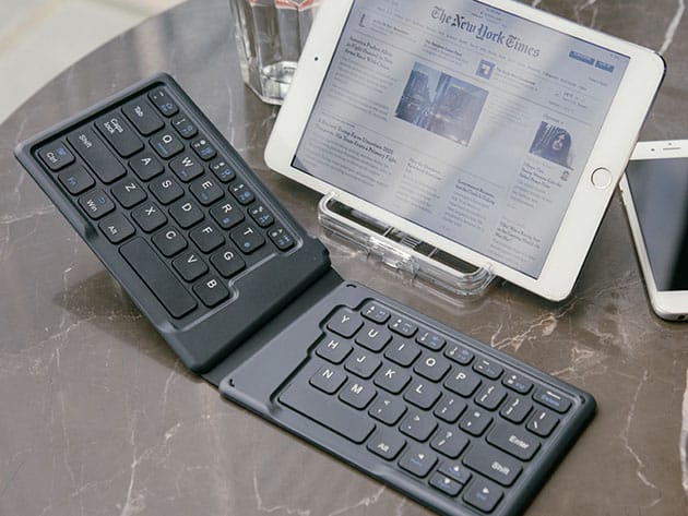 Sending a long email message, editing a detailed document, or taking notes at conference sessions? With your compact companion Universal Foldable Bluetooth Keyboard, you can get more done on your tablet or smartphone no matter where you are. The ergonomic design of this V-Shaped Bluetooth Keyboard with a 166° angle gives you the most comfortable typing experience. This design helps create a natural typing position and minimizes pressure on your hands and wrists so you can be productive for longer periods of time. What’s more, it adopts a scissor mechanism beneath each key, which ensures a quick response for efficient typing. The full-size keyset also provides an excellent sense of touch, making on-the-go typing a breeze.