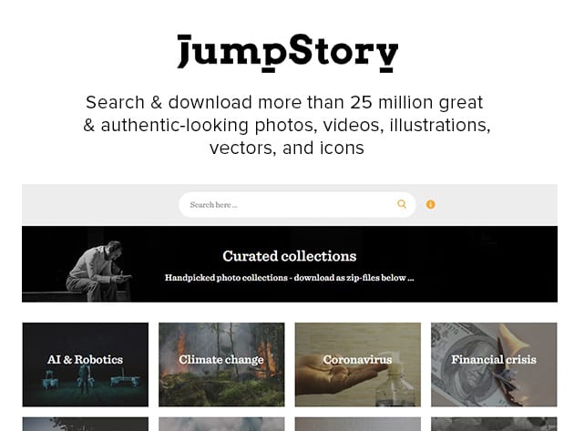 JumpStory is a Adobe Stock alternative with more authentic looking photos, videos, illustrations, vectors and icons. No more expensive costs per photo or complex license terms. With JumpStory, you get unlimited access to millions of visuals.