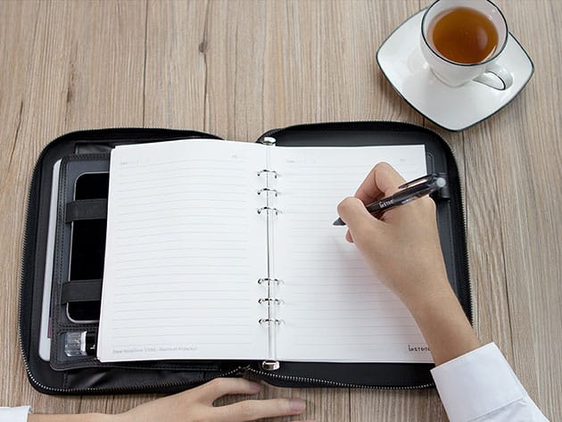 Many of us heavily rely on our smartphones and tablets, so we need to carry our binders and power banks together. Ditch the bulk and drained battery worries with this A5 Wireless Charging Binder by imSTONE. This binder doubles as a power bank. With a built-in 3-in-1 charging cable and Qi wireless pad, you now have a handy 8,000mAh power reserve whenever you need it. This binder is also designed with convenient pockets to store your iPad, smartphone, flash drive, keys, cables, and more. Be more amazed because this binder comes with 54 water-resistant insert pages so you can write smoothly without worrying about accidental coffee spills. To top it all off, this binder has zipper closure to lock all these specs.