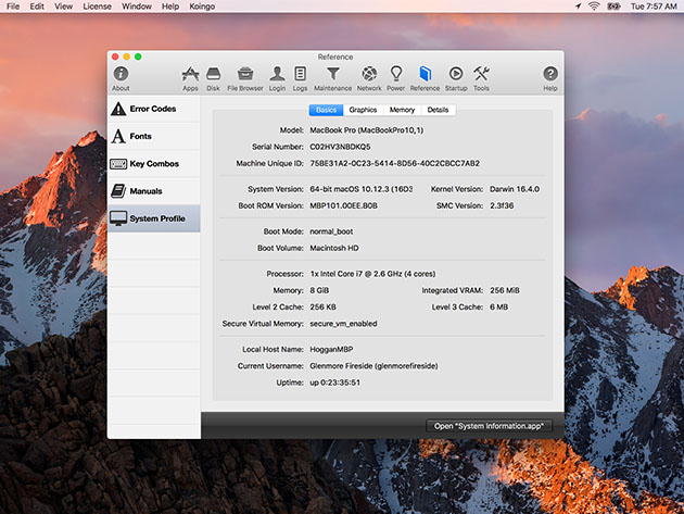 - See everything from the graphics card & RAM bus speeds to the system serial number