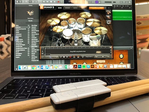 - 2 Senstroke sensors them to fix on your drumsticks which allows you to play anywhere.