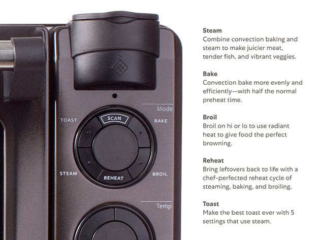 - Make your own food w/ the 5 cooking functions: steam, bake, broil, toast & reheat