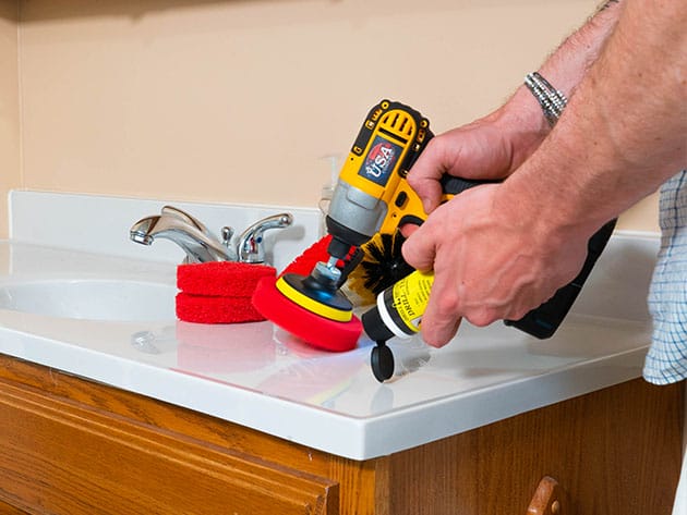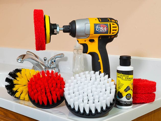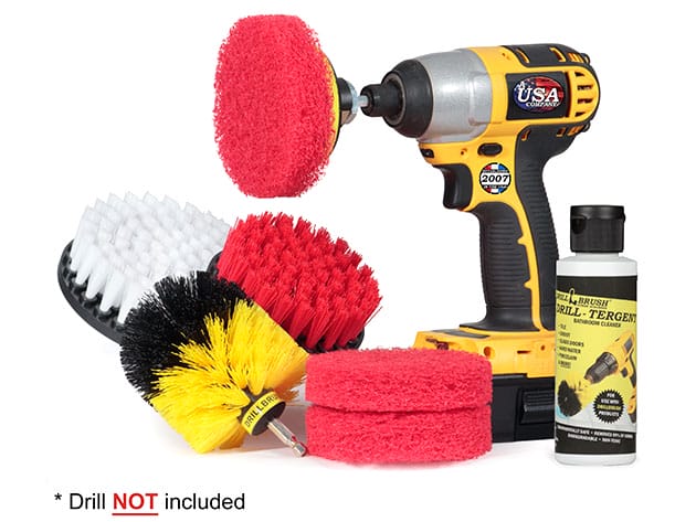 Need a little of everything? This kit has every brush shape and every unique stiffness to make sure you always have the proper tool for the job! These brushes are designed as attachments for use in the cordless drill that you already own. No need to buy another tool to sit in your closet! This variety of drill-powered cleaning brushes and pads is perfect for use on multiple purposes. Get rid of stubborn dirt on your tub, stoves, cabinets, tiles, grills, and so much more! The brushes are color-coded too to avoid cross-contamination. To give you better efficiency, this kit also includes a 4oz bottle of Drill-Tergent, specially formulated to kill 99% of germs. Use it for all your cleaning tasks!