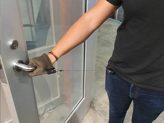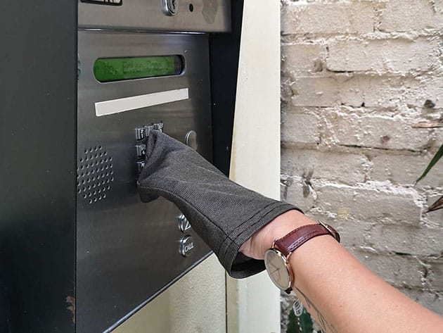 Touch is the most common and fastest means of germ transmission. Prevent that from happening with the Snapback Glove. The Snapback Glove conveniently hangs from your belt and seamlessly gets on your hand when you need to pick up an object, open a door, sign a receipt, and more, and then snaps back to your belt when you are done. Made with proprietary WaveStopper fabric with 70% of SilverFlex fibers, this glove has anti-viral and anti-microbial properties that help to keep the outside of the glove clean and limit the transmission of virus or bacteria from surface to surface. Perfect for grocery stores, gas stations, elevators, shared transportation, and all public places.