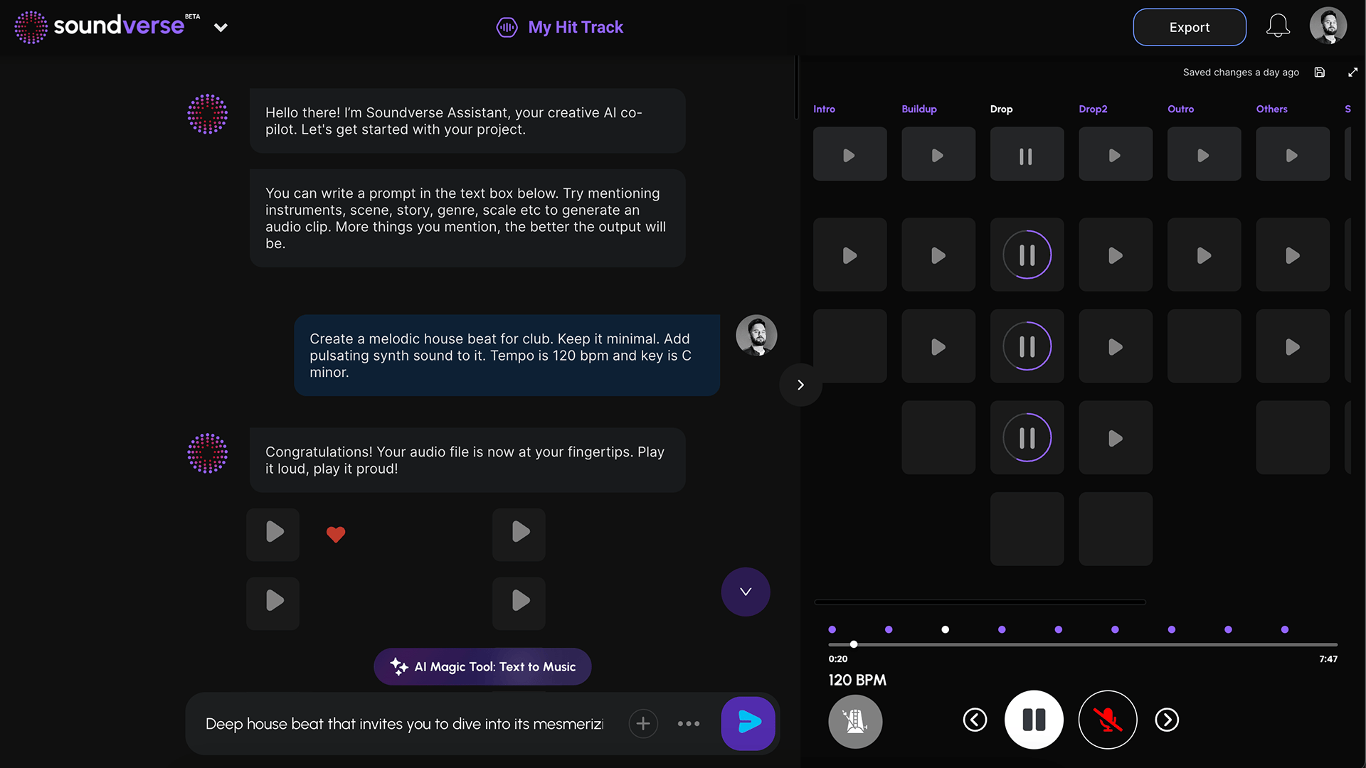 Soundverse is an AI-powered music production tool that helps you write, arrange, and produce original music in just minutes.