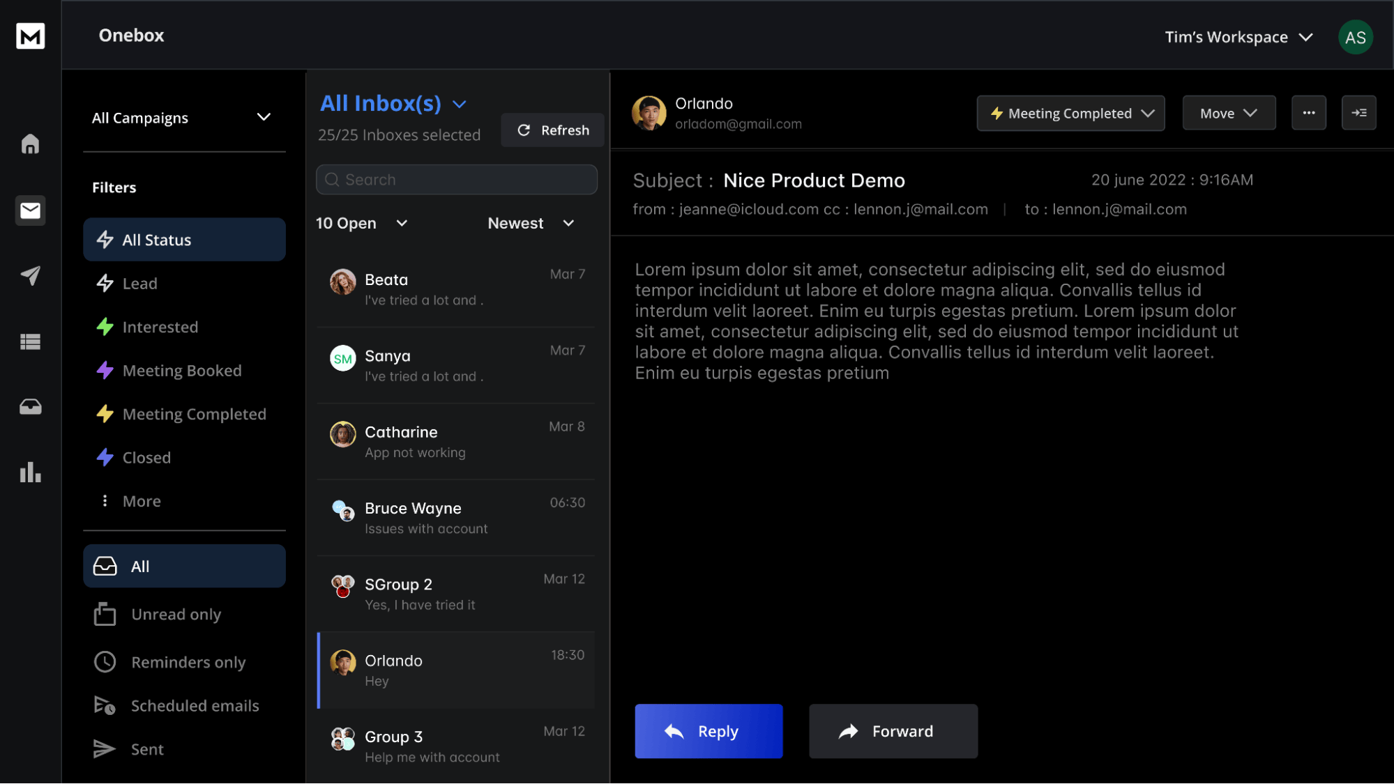 Use AI to write and automate cold email sequences, and monitor every conversation from a single inbox