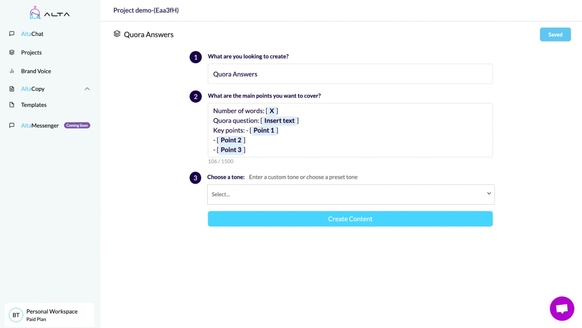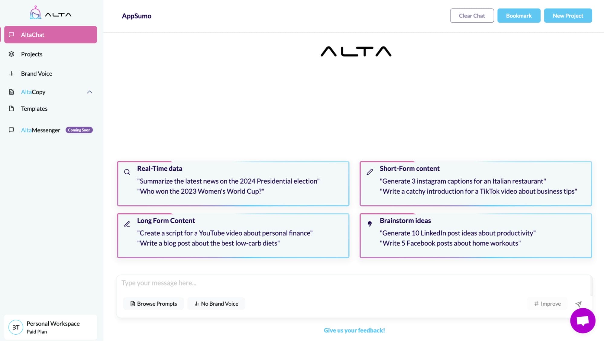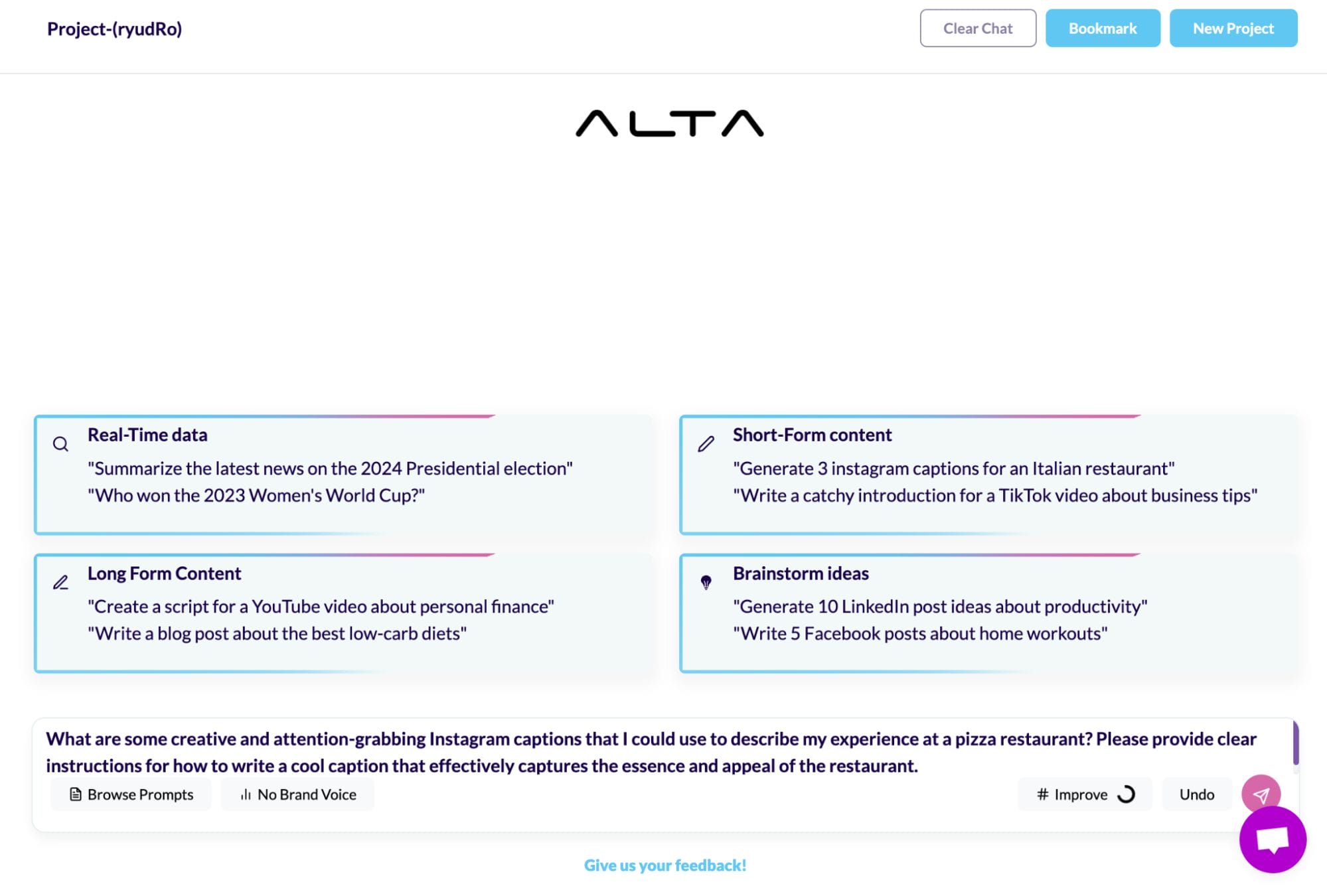 Alta is an AI writing tool that lets you generate high-quality content on an intuitive, user-friendly interface.