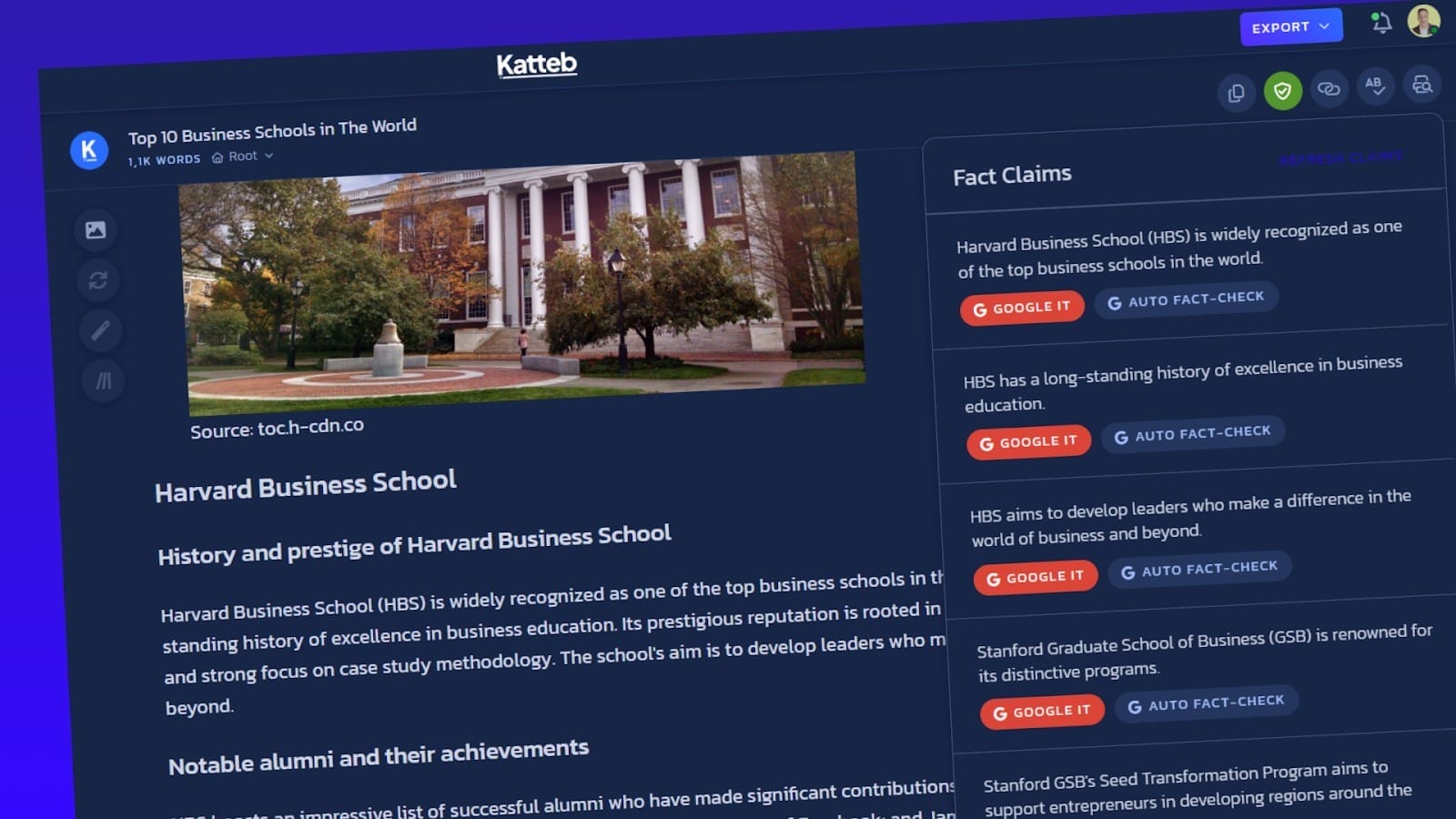 Katteb is an AI-powered writing tool that generates fact-checked, localized content that you can customize to fit your brand voice.