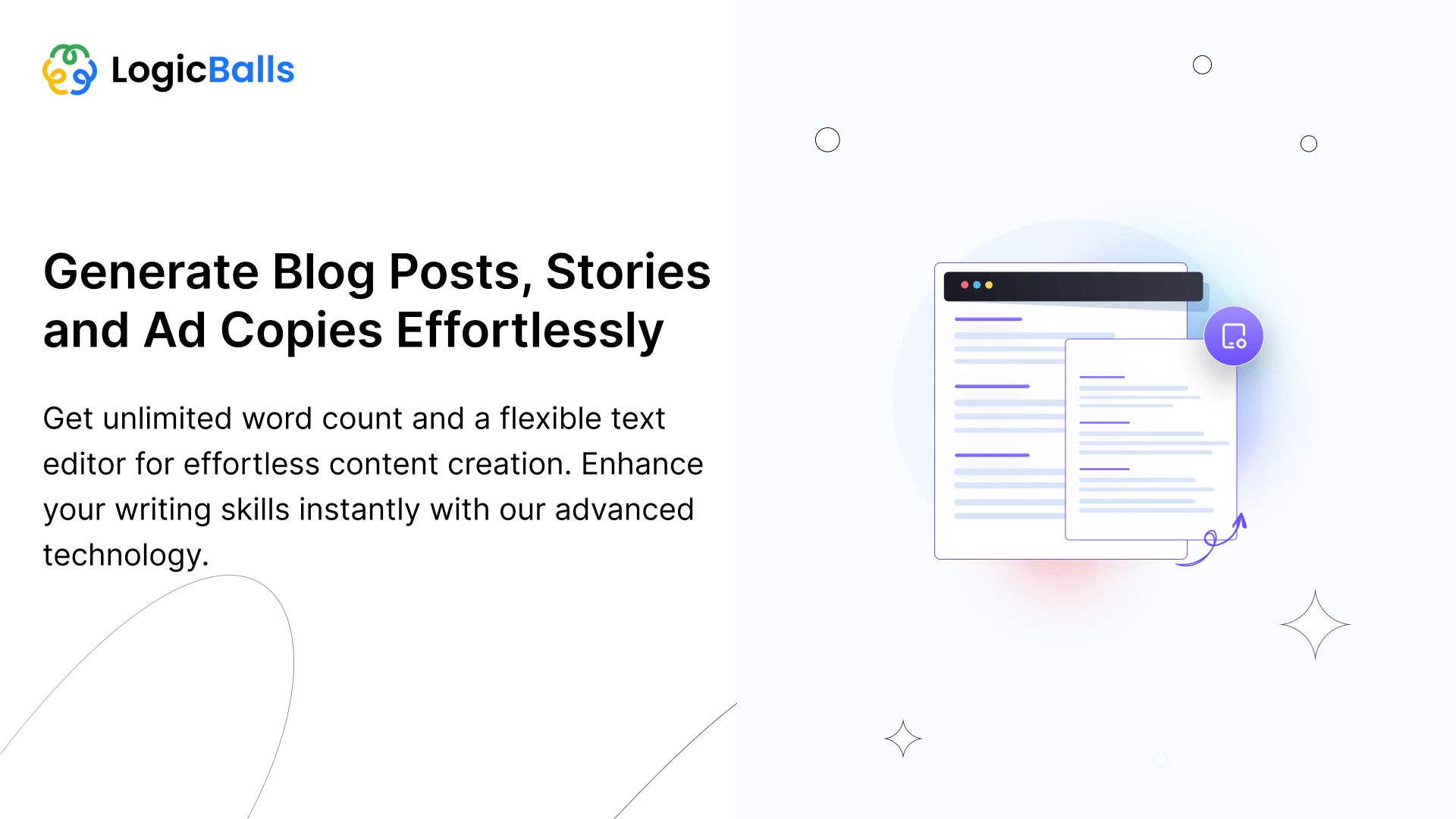 LogicBalls is an AI writing assistant that helps you generate unlimited content for different channels, all while maintaining your brand voice.