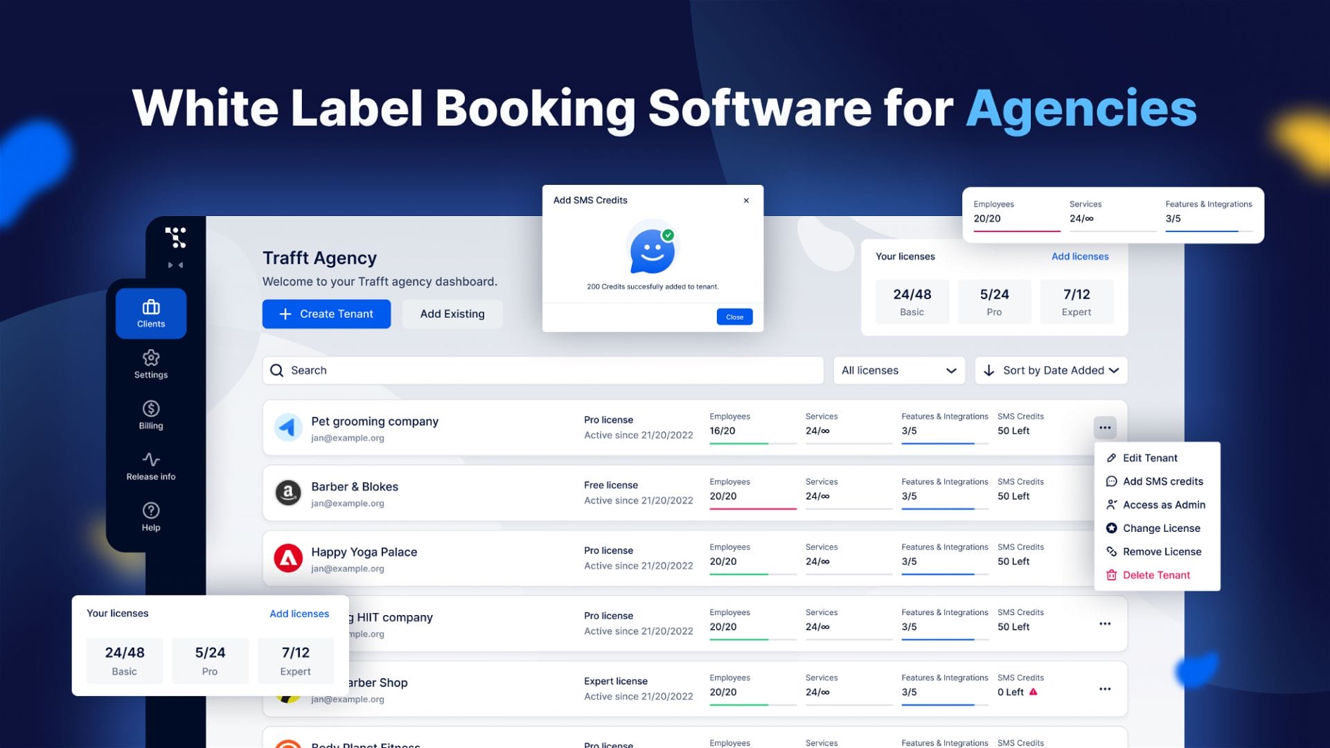 Manage multiple client accounts with custom access levels and white-labeling features on one dashboard with an agency account