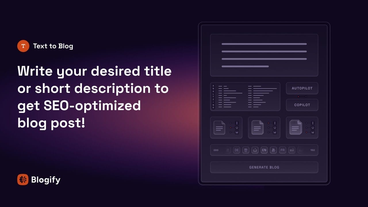 Revolutionize blogging with Blogify: Video/anything-to-blog, AI writing, SEO, autopilot posts & more